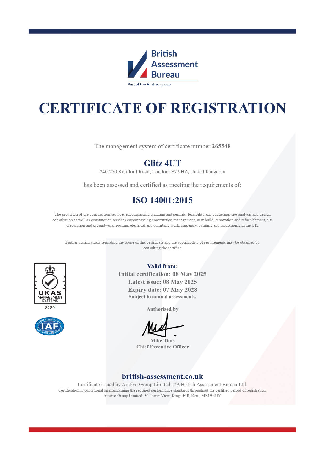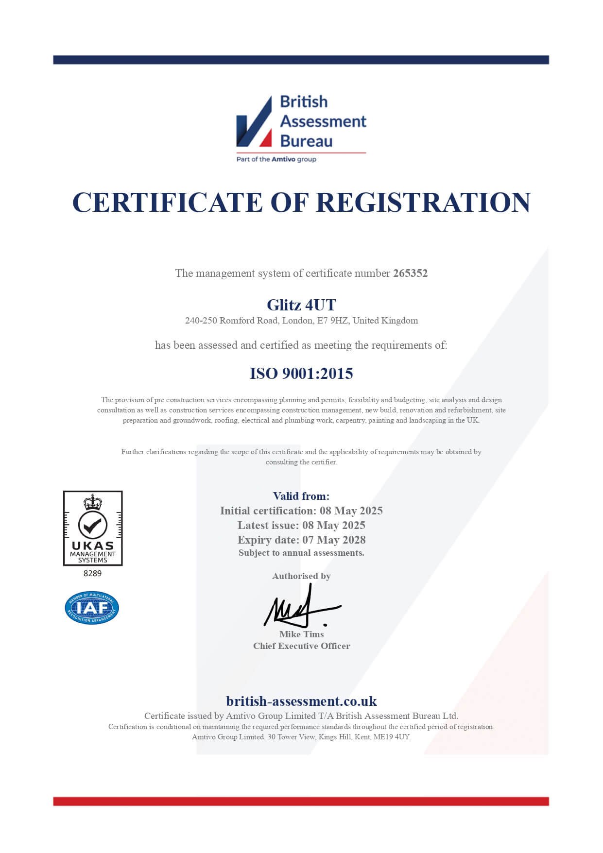 Glitz 4UT is a family-run real estate and construction company, founded on decades of industry experience. Originally operating as a sole trader for six years, Glitz 4UT became a limited company in 2020 under the leadership of Akya, who took over from her father—a seasoned professional with 35 years of experience in property and construction. With a strong commitment to fulfilling client needs, Glitz 4UT combines deep industry knowledge with ISO-certified quality (ISO 9001, 14001, 45001) and a Level 3 Gold in Management Construction Line, ensuring top-tier service and client satisfaction.